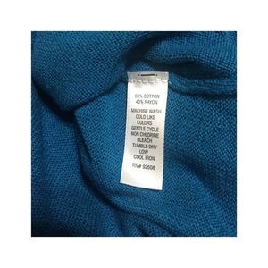 This adorable deep turquoise high/ low V-neck sweater has long sleeves.