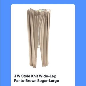 Elevate your wardrobe with these stylish JW Style knit wide-leg pants in Brown Sugar. Perfect for any occasion, these dress pants boast a comfortable and fashionable design that will make you stand out from the crowd. The pants are made from high-quality knit fabric and come in a size L, perfect for regular-sized women.