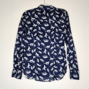 J by J. Crew Navy Cheetah Button Down Blouse M