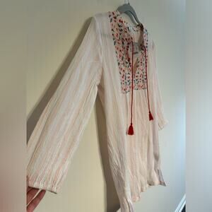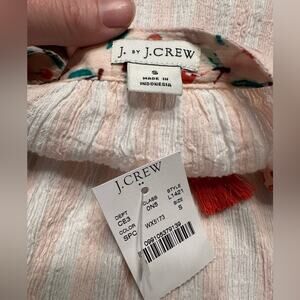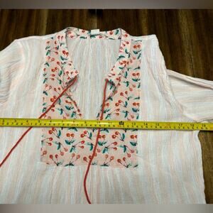 J by J. Crew Striped Gauze Split Neck Tassel Cherry Print Tunic Coverup Small