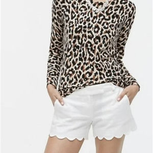 J. by J. Crew White Scalloped Hem Linen Shorts