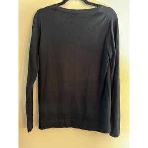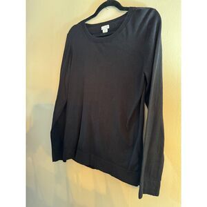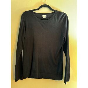 This is a wonderful basic black sweater to add to your fall/winter wardrobe; it is 100% and is J by J Crew; size medium - measures 17" across the chest and 25" from shoulder to hem. Lightweight cotton - non smoking home.
