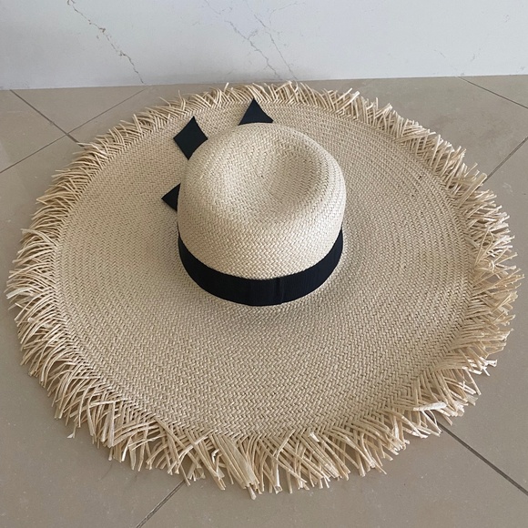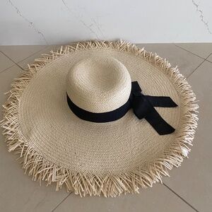 J. by J.Crew Summer Wide Brim Fringe Raw Edge Straw Beach Hat Size S/M