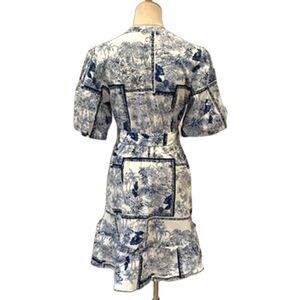 J by Joie Blue White Toile Mini Dress Belted Puff Sleeves Size 2 Cotton Full NEW