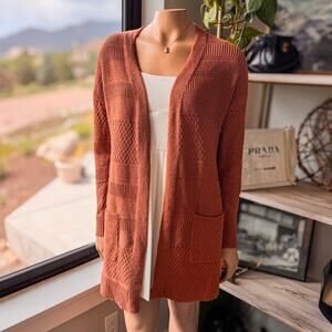 J by Joie, Loosely Woven Cardigan Sweater in Burnt Orange Autumn Tone-Size Small
