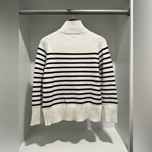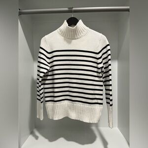 J crew 100% Cotton turtleneck sweater in ivory black stripe size Small NEW