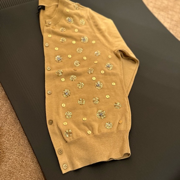 J crew cotton cardigan. Perfect for holiday season. mustard color with sequins. Fits more like S.