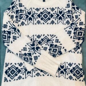 Like new, cream colored sweater with navy apres detail. Sweater has only been worn once is a size medium. Makes a great addition to any ski lodge outfit.