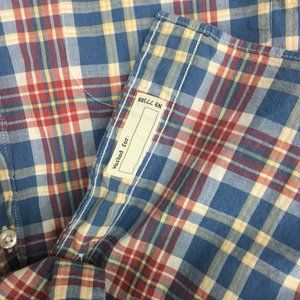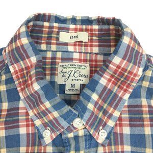 J. crew Button Up Shirt Slim Stretch Secret Wash Shirting Plaid Blue Red M