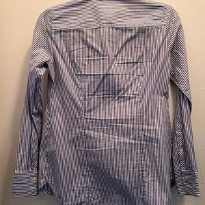 Cotton poplin shirt. Stripes throughout. J Crew collab with COMME DES GARÇONS PLAY