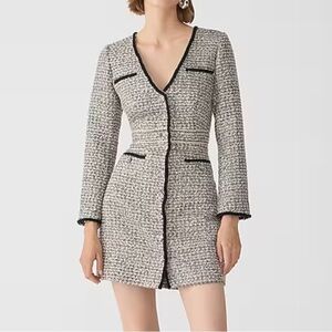 J crew Collection V-neck lady dress in tinsel tweed Gold Grey Lurex Tweed
