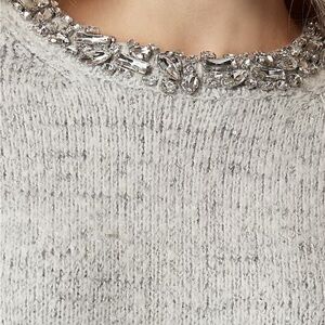 J crew Embellished pullover sweater Light Grey Silver Metal