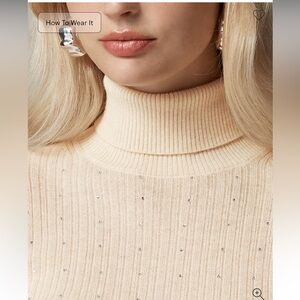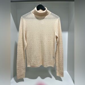 J crew Featherweight cashmere turtleneck sweater rhinestones buttercream XL