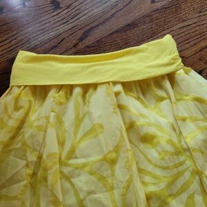 Brighten your wardrobe with this vibrant yellow floral skirt. Perfect for any occasion, this skirt offers a stylish and comfortable fit. Length is last pic