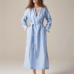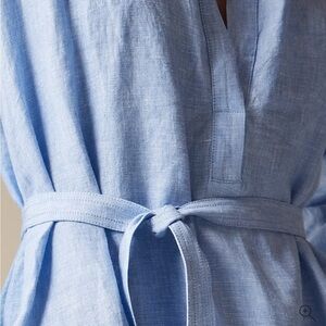 This breezy style comes with a V neckline that shows a hint of skin, a removable tie at the waist for a cinched-in effect and gathered details along the collar and cuffs. Plus, it's crafted from lightweight 100 percent linen to keep you cool all day long.