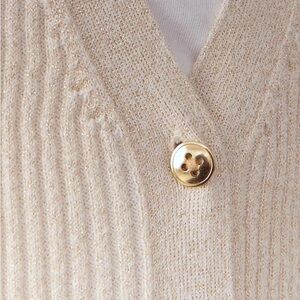 This cool cardigan features a slightly cropped, fitted silhouette that makes layering (over dresses or tees) even easier. Equal parts soft and shiny, it's made from a ribbed cotton with flecks of metallic threading.