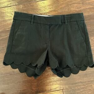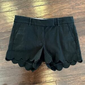 J crew Linen Blend Scallop Hem Shorts L2142 Pockets 2021 Solid Black Size 2