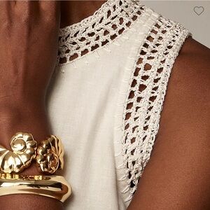 It's easy and effortlessly flattering, thanks to the high neckline, relaxed fit and mini length. Plus, it has intricate crochet details at the neckline and sleeves and a lightweight 100 percent linen finish.