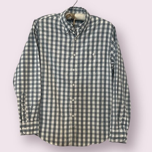 J crew Men's Button Down Shirt Gray White Gingham Long Sleeve Size Medium Cotton