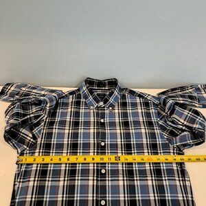 J. crew Men's Medium Slim Fit Flex Washed Long Sleeve Plaid Shirt Style #BB716.98% cotton, 2% elastane. Button down collar. Single chest pocket. Slim fit. Black, gray. blue, red and white plaid. Shirt is in excellent used condition. Please see photos for details and measurements. This is a slim fit shirt.