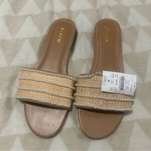 Faux-raffia upper. Rubber outsole. Man-made sole. Product Details - Imported. Select stores. Item BN877. Defect in beading