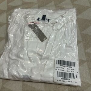 This breezy style comes with a V neckline that shows a hint of skin, a removable tie at the waist for a cinched-in effect and gathered details along the collar and cuffs. Plus, it's crafted from lightweight 100 percent linen to keep you cool all day long.
