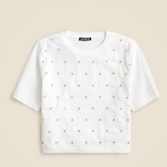 Embellished with sparkling crystal details, this short-sleeve T-shirt is the easiest way to get dressed (up) this season. Plus, it comes in a relaxed fit for guaranteed comfort no matter the occasion.