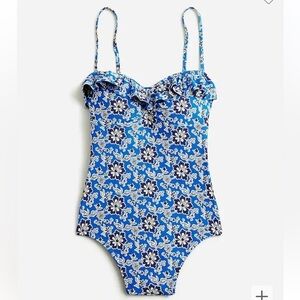 J crew Ruffle one-piece swimsuit in cobalt floral