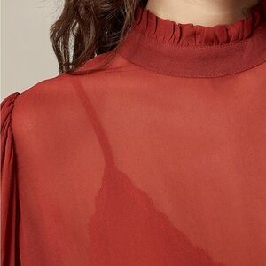 Crafted from our subtly sheer viscose chiffon, it comes with a lace-trim camisole underneath and ruffle details at the neckline for that extra something.