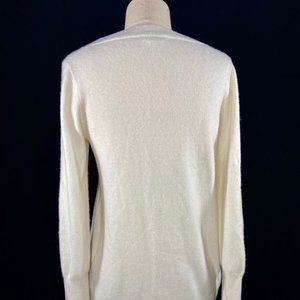 V neckline, mini-ribbed cuffs and hem with long sleeve; Ribbed v-neck, cuffs and hem
