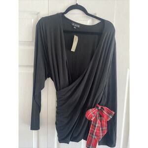 J crew Womens Plus 3X Black Faux Wrap Red Plaid Tie Wast NEW