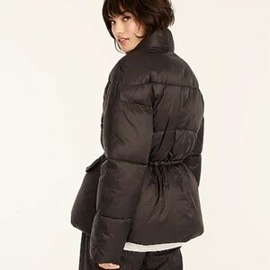 As seen in our fall campaign... Introducing our most sustainable puffer collection ever. This ultra-flattering puffer features a standing shawl collar (better to block out blustery winds), a secret interior pocket and an adjustable drawcord at the waist. But our favorite part has to be that it's crafted from slightly shiny, lightweight recycled nylon and filled with PrimaLoft, a down-alternative that keeps you warm, and keeps plastic bottles out of oceans and landfills.