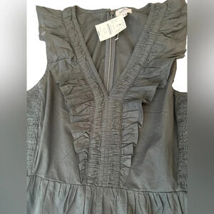 J crew black midi dress V neck with ruffles Size 8 Pit to pit 17” Length 45”