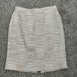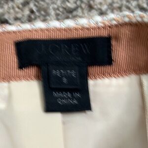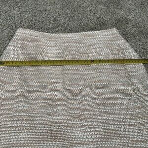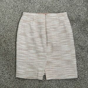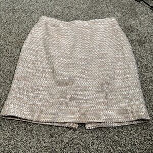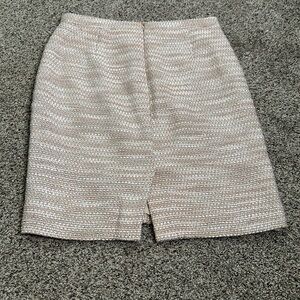 J crew slik blend tweed metallic skirt size 8p great condition color beige blush pink and sliver the waist is 15 inches the hip 18.5 inches the length is 21 inches