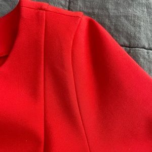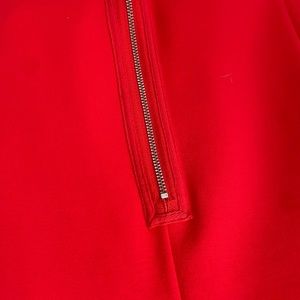 Absolutely gorgeous. This J.Crew sheath dress is fantastic! Yummy thick stretchy fabric in a rich orange color. Almost like a soft neoprene. Simple styling and fitted design. Depending on your size it could fit like a body contour style. But the fabric is thick and flattering. Exposed back zipper. Extra small petite. Never worn! The inside tag has a mark through it to prevent returns.
