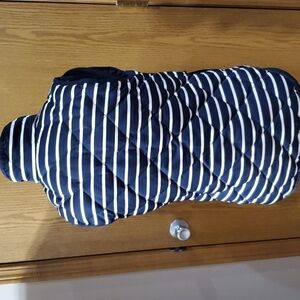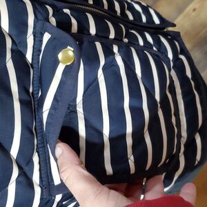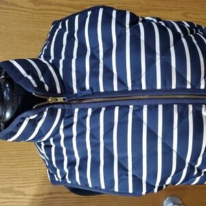 excellent condition no issues navy blue white striped down filled quilted puffer vest by j crew size small