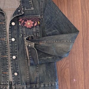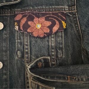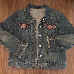 J crew embroidered denim cotton jacket birds and florals Jean button up sz M
