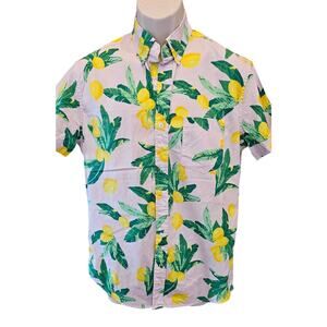 J crew flex stretch lemon floral fun print short sleeve button up preppy M EUC