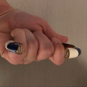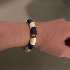 Like new gold ceramic bangle by J.Crew with white and blue ceramic detail. Closes with a magnetic clasp. In excellent condition. Smoke-free home.