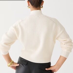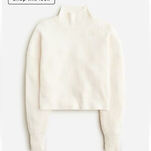 J crew ivory Ribbed turtleneck sweater in stretch yarn
