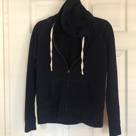 Hooded. Only worn a few times. Navy with creme ties. Size small. Also have matching sweatpants, if interested I will list and sell the bundle for $18.