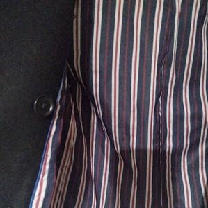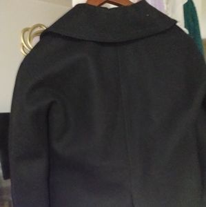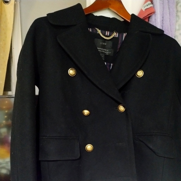 beautiful wool J Crew black jacket medium with gold buttons beautiful interior striped with red and a beige worn only a couple times great for every occasion very classy