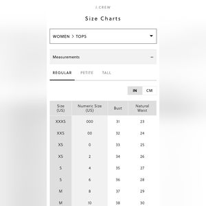 Hi the Bust size is 33 for this jacket even posted the measurements for j crew jackets