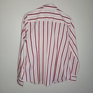 Pink and red and white striped long sleeved cotton ladies blouse, perfect for jeans and casual wear. LIKE NEW