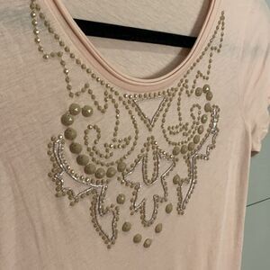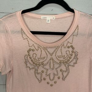 J crew light, pink beaded feminine T-shirt, cotton women’s size small
