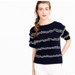 J. crew navy ruffle boatneck sweater M