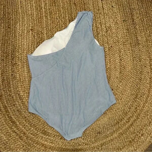 J crew one piece swimsuit/4 ruched one shoulder one piece seersucker stripes