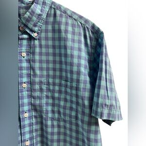 J crew purple and blue short sleeve plaid button down shirt