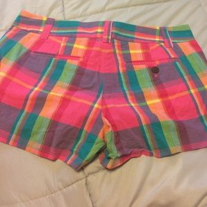 Never worn. Multi colored plaid J Crew shorts. Pockets in front, "fake" pockets on back. Light weight.