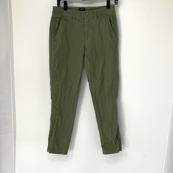 J crew slim chino pants women’s size 0 waist lying flat measures 14 inches rise measures 9.5 inches inseam measures 27 inches